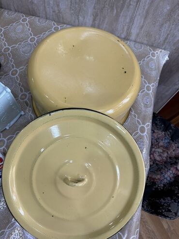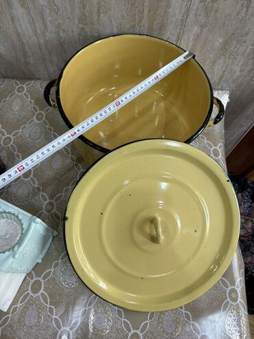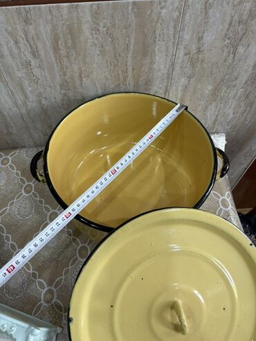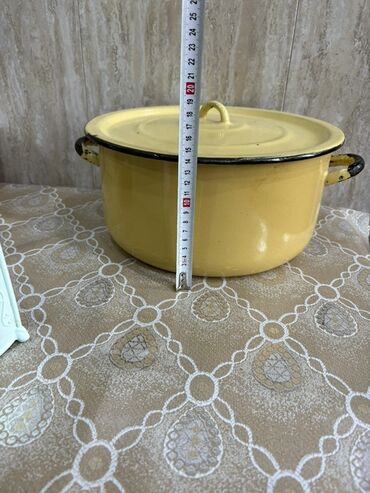 Sarı rəngdə, qapaqlı, iki tutacaqlı emallı qazan. Bu qazan yemək bişirmək və ya saxlamaq üçün istifadə edilə bilər. Qazanın diametri təxminən 32 sm, hündürlüyü isə təxminən 24 sm-dir. Mətbəxdə geni...