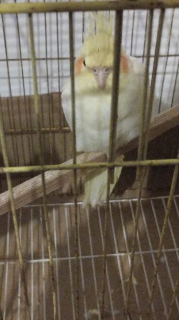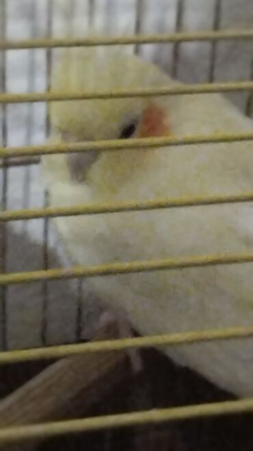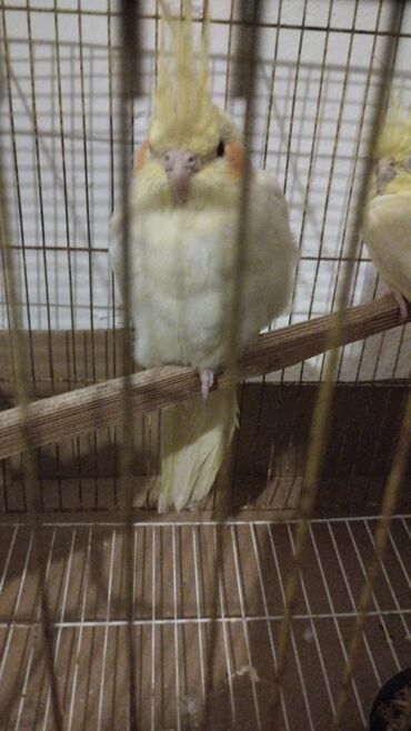Növ: Nimfa (Cockatiel) – sarı rəngli, yanaqlarda narıncı ləkəli Xüsusiyyətlər: - Əldə öyrəşmiş, barmağa çıxır - Ayağında identifikasiya halqası - Uzun quyruqlu, başında sarı toqqa - Qəfəs aksesuarl...