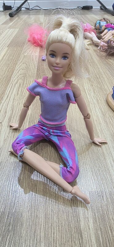 BARBIE MADE TO MOVE MEDITATION Sarı saçlı, oynaq bir gəlincik. Üzərində bənövşəyi-çəhrayı naxışlı iki hissəli geyim var. Gəlinciyin saçı sarıdır və yuxarıda yığılmış at quyruğu formasındadır. Mavi gözləri və gülümsəyən ifadəsi ilə diqqət çəkir. Qolları və ayaqları oynaqdır, bu da müxtəlif pozalar verməyə imkan verir. Geyimi bənövşəyi rəngli üst və uyğun naxışlı şalvardan ibarətdir. Oyun üçün əlverişlidir.