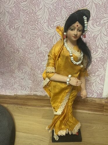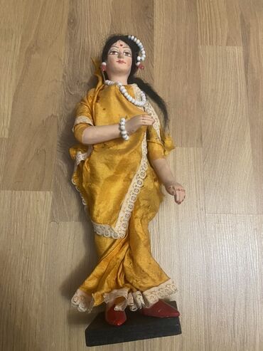Dekorativ hərəkətsiz fiqur – sarı sari geyimli Şərq üslubunda qadın heykəlciyi.
