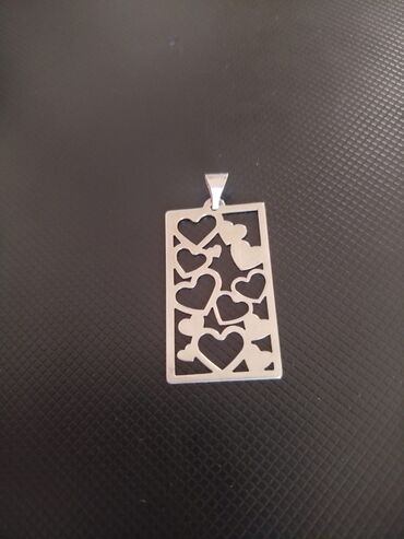 Mücəvhər aksessuarı – emaye rəngli izlərlə işlənmiş gümüş rəngli sallanan pişik pandantı - Dizayn: Zəncirə bağlı iki halqa arasında sallanan, oynaq poza verən pişik fiquru - Üzərində: Halqalarda ç...