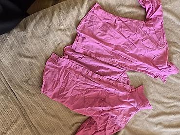 Qadın köynəyi – çəhrayı rəng - Model: yarım düyməli (placket) dizayn, klassik yaxalıq - Rəng: canlı çəhrayı - Qol: uzun qol; qolu yuxarı qatlayıb düymə ilə fiksasiya etmək üçün qayışlı (roll-up) d...