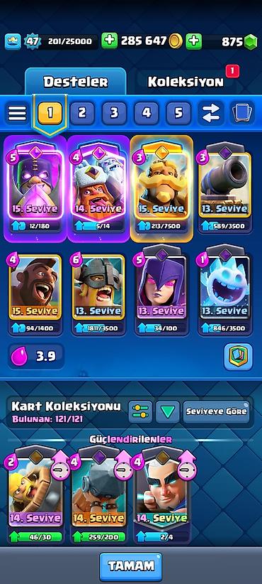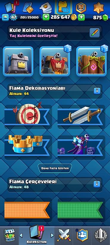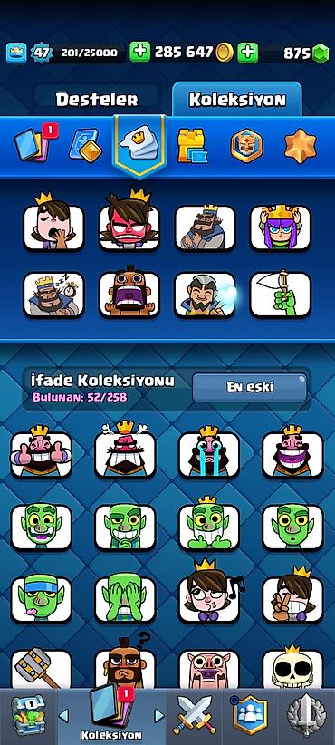 - Kral səviyyəsi: 27 - Kubok: 4600 - Ad: LegasyXX (klan yoxdur) - Qızıl: 179 763 - Cəvahirat: 65 - Pass Royale: 56-cı səviyyə, 9/10 - Kart kolleksiyası: 90/121 - Qəhrəman nişanları: 45/200 (1/10 al...