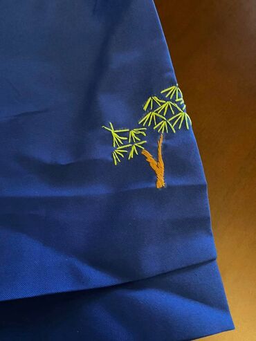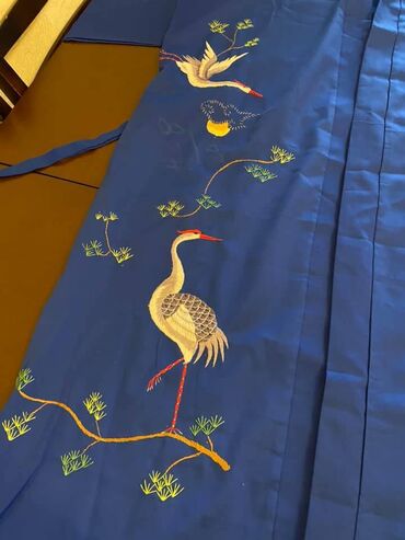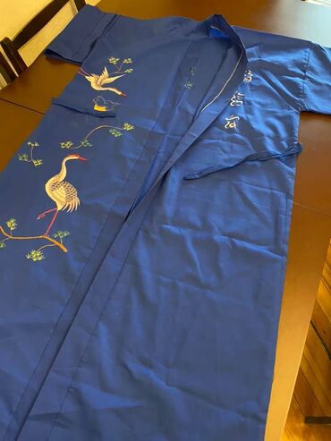 Etnik üslublu qadın üst geyimi – qara rəngli, azad kəsimli kimono/abizə tipli kaftan. Ön hissədə iki dekorativ panel var: - solda: çoxrəngli boncuklar, düyməvari elementlər və naxışlı parça; - sağd...