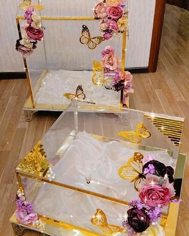 Nishan ucun istifade olunan hediyye dibcekleri, material kardon, tezedir, boyuk ag 15m, balaca goy 10azn.