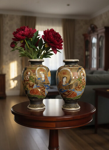 Bu vazalar Yaponiyanın məşhur Satsuma saxsı nümunələrindəndir və kolleksiyaçılar üçün yüksək qiymətə malikdir. Əl işi detalları və Shimazu gerbi möhürü onların orijinallığını və tarixini təsdiqləyir.