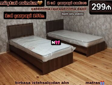 Satılır: *Birbaşa istehsaldan çarpayi* 💥💥💥Şok şok şok💥💥💥 *YALNIZ AY SONUNADƏK* Qeyd:Yenidir,sifarişlə 2-3gün müddətinə hazırlanır.Ölçüsü 90x200sm-dir.Rəng seçimi də var. *Matras üzərində hədiyyə🎁* ...