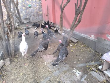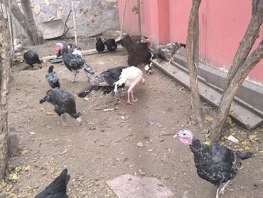 Dişi-20manat, Erkək-17 manat(kilosu).Hind toyuqları – fərqli rənglərdə (qara, boz naxışlı və ağ). - Qrup halında saxlanılan erkək və dişi hinduşkalar görünür. - Açıq sahədə sərbəst gəzintiyə uy...