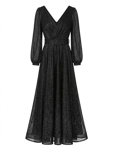 Zərif və parıltılı qara axşam donu (ziyafət geyimi).