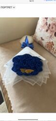 15 deneli mavi lentle hazirlanmiw gozel buket Ebedi xatire qalacaq hediyyelik.Cox seliqeli qalib qiymeti 17 m.Metrolara catdirilma 3 m. Erazi Xirdalan Kristal 1