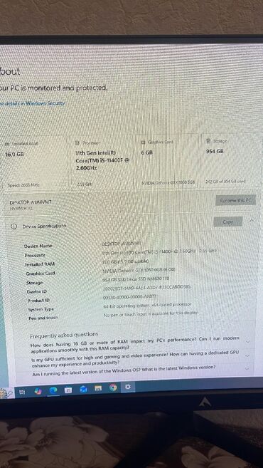 Yığılmış masaüstü kompüter + monitor (komple paket) Texniki göstəricilər: • Prosessor: Intel Core i5-11400F (6 nüvə / 12 thread) • Ana plata: Gigabyte H510 • RAM: 16 GB DDR4 (3200 MHz) • Yaddaş: Lexar NVMe SSD — 1 TB • Graphic card: NVİDİA GeForce GTX 1060 6Gb • Monitor: 24″ • Korpus: Game case + 3 × RGB fan • Soyutma: Deepcooler • Qida bloku (PSU): 850W 🎯 Üstünlüklər: •Orta / yüngül-ağır oyunlar, multimedia, dizayn, gündəlik işlər üçün tam yetərlidir. •1 TB NVMe SSD ilə sürətli yüklənmə və geniş yaddaş. •16 GB RAM və güclü CPU — həm oyun, həm də iş üçün stabil performans. •Monitor daxil — əlavə ekran almaq lazım deyil. •850W PSU daim güclü və sabit enerji təmin edir; gələcəkdə upgrade də etmək olar. Qiymətdə razılaşmaq olar.