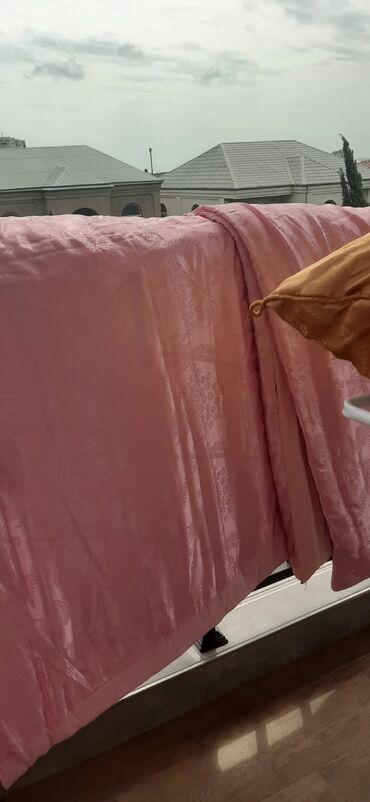 - Komplekt: 2 ədəd qalın yorğan (çəhrayı və qızılı), kənarlarında bərkidilmiş haşiyə