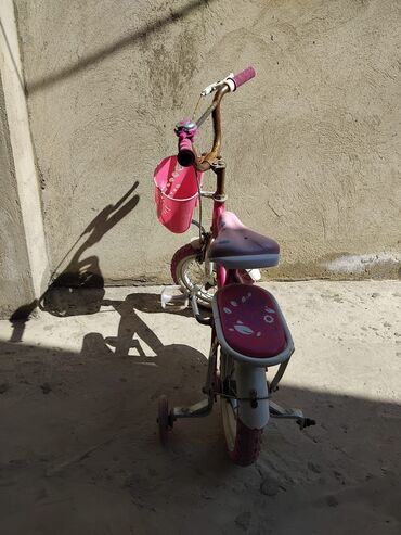 Çəhrayı rəngdə uşaq velosipedi. Bu velosiped uşaqların velosiped sürməyi öyrənməsi üçün ideal seçimdir. Ön hissəsində səbət və arxasında baqaj üçün yer mövcuddur. Hər iki tərəfdəki kiçik təkərlər t...