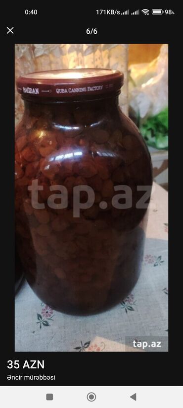 Məhsul: Əncir cəmi Təsvir: - Təbii əncir meyvəsindən hazırlanmış, qatı və ətirli cem. - Evinizdə səhər yeməyi üçün çörək, lavaş, peçenye ilə; desert və şirniyyatlarda içlik və ya sous kimi istifad...
