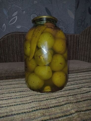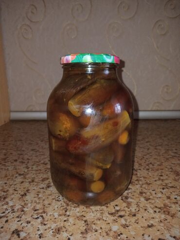 Ev konservi – “badımcan turşusu” (bostan badımcanının qızardılıb marinadlanmış növü). Balonu 12 manat - Şüşə bankalarda: biri iri həcmli (təxminən 3 litr), digəri standart kiçik banka.