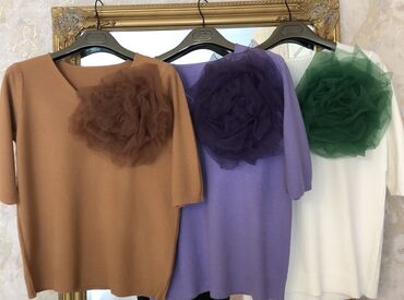 Qısaqol qadın bluzası – məxmər material, qara rəng. - Yüksək yığma yaxa, arxa hissədə düyməli açılış (2 ədəd dekorativ qızılı düymə ilə). - Qollar balon formadadır, uclarında qızılı düymə detalları...