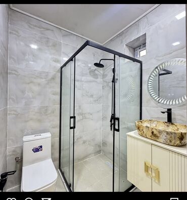 - Sanuzel: Tam təmirli; şüşə kabinalı duş, qara aksessuarlar, mərmər formalı dekorativ üz yuyucu, asma güzgü işıqlandırma ilə