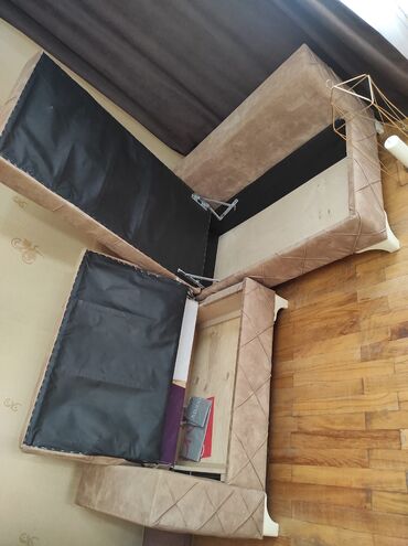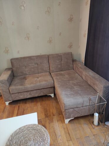 - Konstruksiya: 2 moduldan ibarət L-forma; eni geniş qoltuqlar; aşağıda ağ rəngli dekorativ ayaqlar