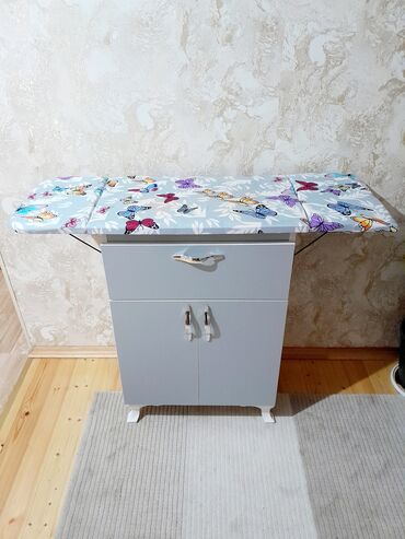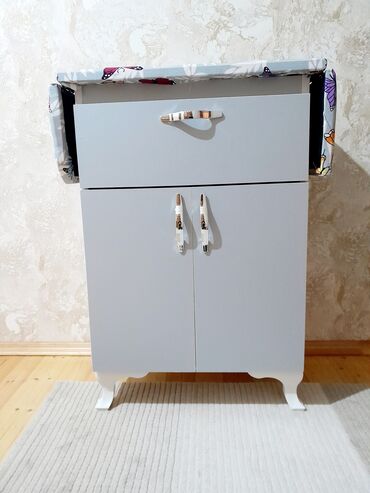 Ütü masası ilə saxlanclı dolab - Üst hissə: ütüləmə üçün yumşaq örtüklü geniş masa səthi - Quruluş: bir böyük qapılı bölmə, iki çekmece və alt hissədə əlavə uzun çekmece - Material: möhkəm taxta/M...