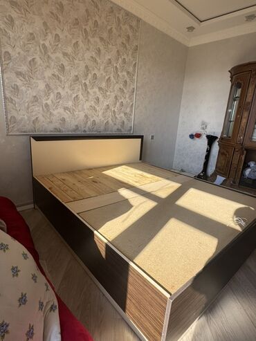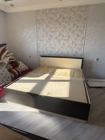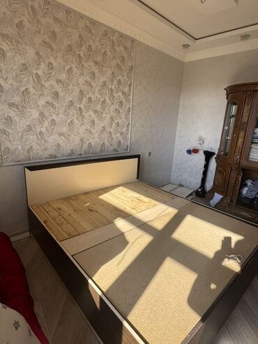 Qaldırılan mexanizmlə sandıqlı yataq dəsti. - Ölçü: 160 x 200 sm - Başlıq: düyməli, yumşaq kapitonajlı mavi parça ilə - Korpus: ağ rəng, geniş daxili sandıq sahəsi - Çarpayı üstü metal karkaslı, qa...