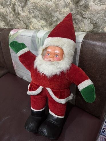 - Material: yumşaq plyuş parça, süni yun (saqqal və yaxalıq), plastik üz, PVC botlar