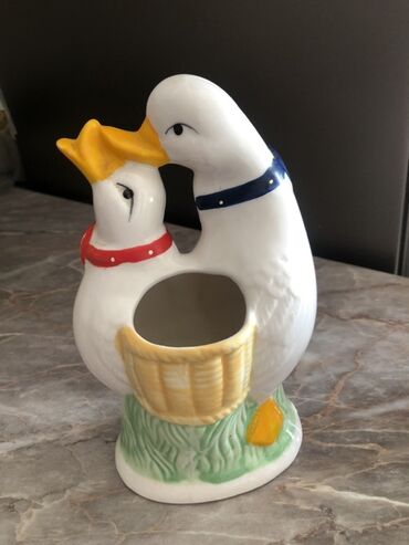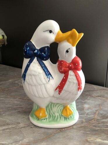 Keramika qu quşu fiqurlarından ibarət dekor dəsti - 3 hissədən ibarət masaüstü dekor: 2 böyük qu quşu və 1 orta ölçülü mərkəzlik - Material: şirəli keramika/porcelan - Rənglər: krem-ağ əsas, çəhra...