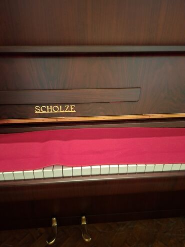 Məhsul: Scholze akustik pianino (upright) Təsvir: - Marka/model: Scholze - Növ: Akustik upright pianino - Korpus: Tünd qırmızı-qəhvəyi (mahogani üslubunda) taxta finiş, incə qızılı xətlərlə - Klav...