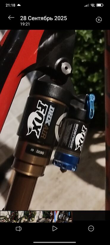 - Arxa amortizator: FOX Float DBX Air Boost Valve (tənzimlənə bilən kompressiya/rebound, mavi lockout/qol).