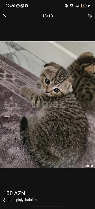 Skotish Fold balaları – ev pişiyi - Cins: Scottish Fold (qıvrıq qulaqlı) - Rənglər: qızılı shaded/tabby və krem-açıq (şəkillərdə) - Xüsusiyyətlər: iri mavi-göy gözlər, yumşaq sıx tük örtüyü, kompa...Giriş•Qeydiyyat