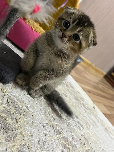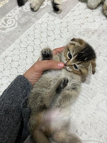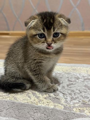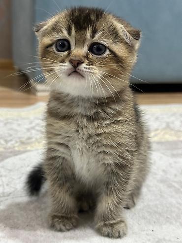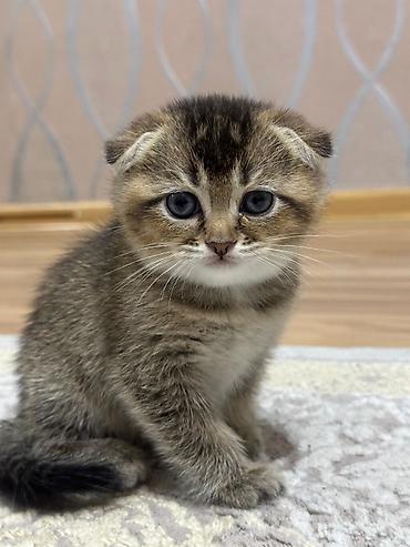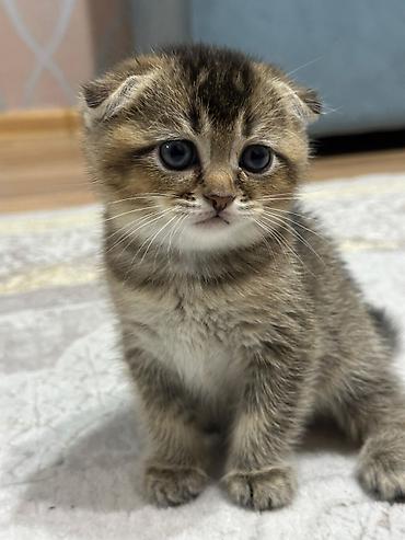 Şotland qıvrımqulaq balası (Scottish Fold) – gümüş rəngli tabbi naxışlı Xüsusiyyətlər: - Cins: Scottish Fold (qıvrım qulaqlar) - Rəng: gümüş tabbi, tük uclarında tünd kölgələr - Gözlər: iri və eks...