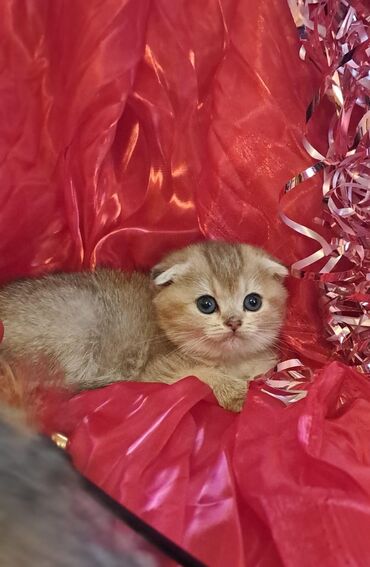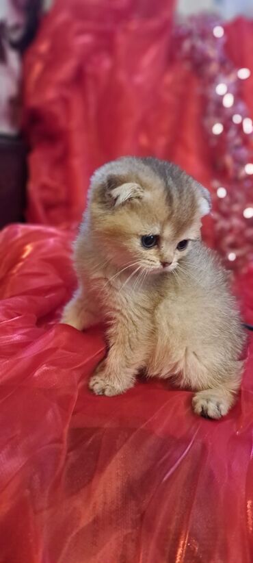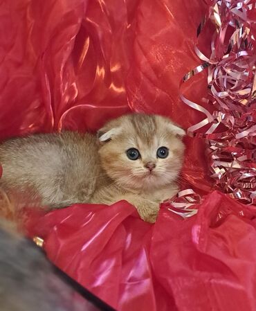 Şəkillərdə eyni zədəsiz, sağlam balalar göstərilib: iri ifadəli gözlər, yumşaq kürk və tipik Fold qulaqları ilə.