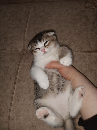 - Şəkillərdəki bala elə həmin pişikdir; qısa tüklü Scottish Fold tipinin xüsusiyyətlərini daşıyır.
