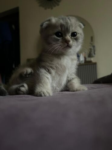 Scottish fold miks Xüsusiyyətlər: - Yaş: baladır (yeni doğulmuşdan bir qədər böyük) - Rəng: ağ-boz-qara qarışıq, pəncələri və sinəsi ağ - Qulaqlar yumuşaq aşağı əyimli, gözləri iri və mavi-boz t...