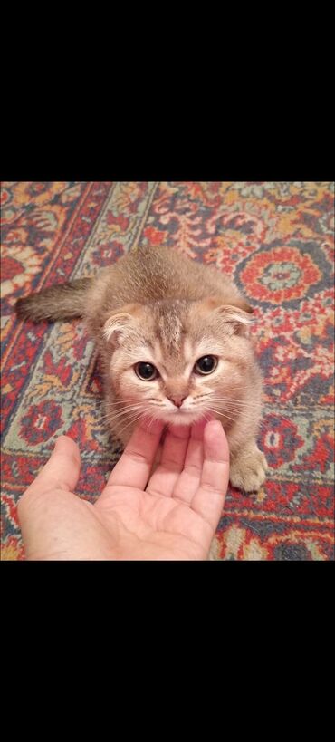 Scottish Fold balaca pişik balası - Cins: erkek Scottish Fold (qulaqcıqları yığılıb) - Rəng: qızılı “golden” şinşilla tonlarında, zərif tünd kölgələr - Gözlər: iri, dəyirmi; mimikası çox ifadəli -...