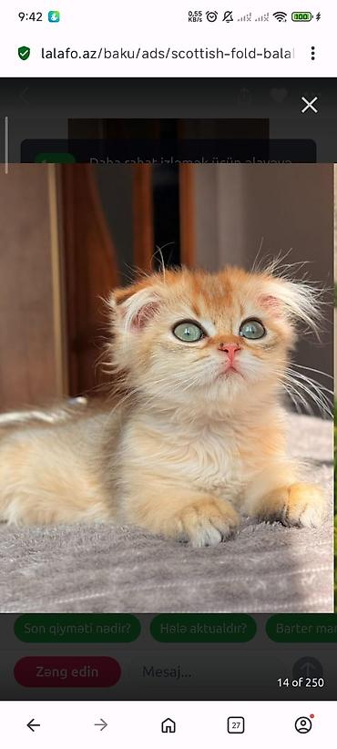 - Cins: Scottish Fold (qatlanmış qulaqlı)