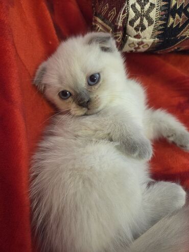 250 AZN 4ayliğ ✅ Scottish Fold Colorpoint ✅ Scottish Straight × Siam qarışığı dişidir Şotland qıvrımqulaq (Scottish Fold) pişiyi - Rəng: krem-bej bədən, boz-qumral (smoke/blue) üz, qulaq, pəncə v...