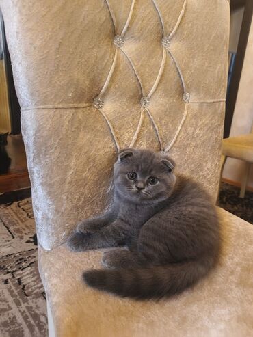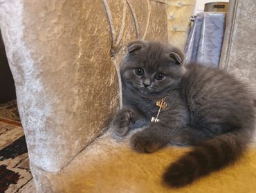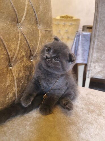 Britan tipli bükükqulaqlı pişik balası (Scottish Fold görünüşlü), “blue” (boz) rəng - Yumşaq, sıx, tükü parlaq, quyruğu dolğun - Böyük, yuvarlaq gözlər, kiçik bükülü qulaqlar - Ev şəraitinə uyğun, ...