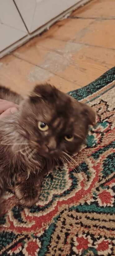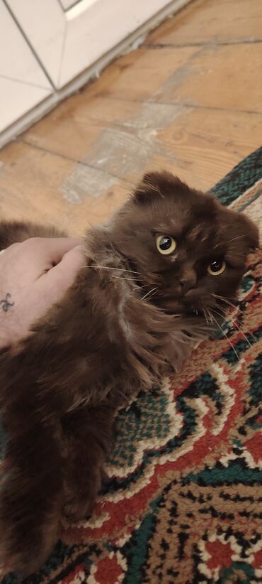 Şotland uzun tüklüScottish Fold tipli pişik – şokolad rəngli, uzun tüklü