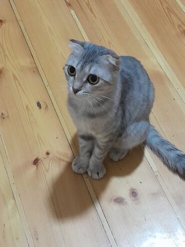 Scottish fold miks Xüsusiyyətlər: - Yaş: baladır (yeni doğulmuşdan bir qədər böyük) - Rəng: ağ-boz-qara qarışıq, pəncələri və sinəsi ağ - Qulaqlar yumuşaq aşağı əyimli, gözləri iri və mavi-boz t...