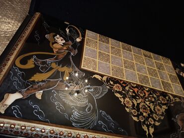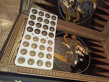 Taxta səthli, əl işini xatırladan dekorativ şahmat nərd taxtası. Çexertməli çiçək ornamentləri və zərif naxışlarla bəzədilmişdir. Kvadratlara bölünmüş mərkəz sahəsi şahmat üçün nəzərdə tutulub; qap...