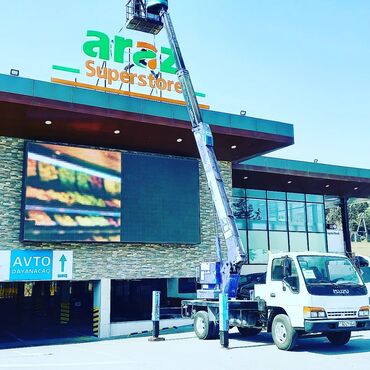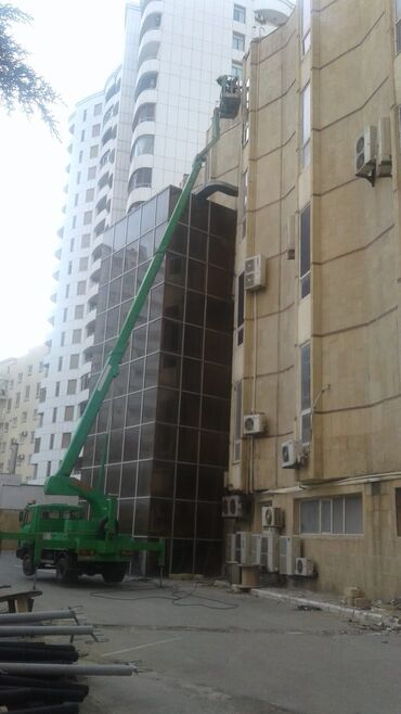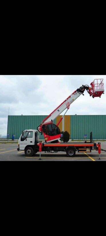 Avtokran-sepet (avtokaldırıcı) xidməti - Markalar: Isuzu şassisi üzərində hidrolik səbətli lift; əlavə olaraq Hyundai şassili səbətli lift. - Tip: Hidravlik səbət (manlift) – fırlanan boom və tele...