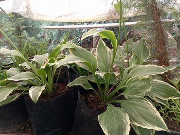 - Hosta (kənarları krem-ağ haşiyəli): Kölgə və yarı kölgə sevən, iri dekorativ yarpaqları ilə landşaftda vurğu yaradır. Rütubətli, yaxşı drenajlı torpaqdan xoşlanır; bordür, ağac altı və kölgəliklər üçün uyğundur.