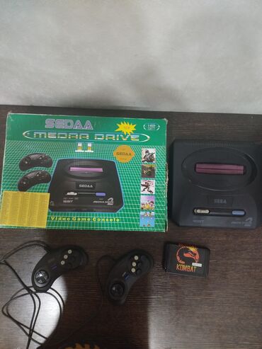 Sega Mega Drive 2 (16-bit) oyun konsolu Komplekt: - Sega Mega Drive 2 konsolu (16-bit) - 2 ədəd simli oyun pultu (3 düyməli + Start) - Güc adapteri - TV-yə qoşulmaq üçün AV kabeli (sarı video çıxı...