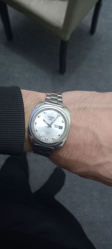 - Siferblat: Gümüşü rəng, baton indekslər, Seiko 5 loqosu