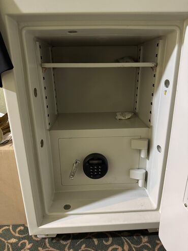 hundurluk 65 cm en 50cm derinlik 45sm - Korpus: qalın metal konstruksiya, ikili rəng (qəhvəyi/bej) - Kilidləmə sistemi: elektron klaviaturalı rəqəmsal panel + açarla mexaniki kilid (ehtiyat açarlar...