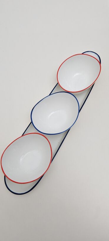 - Oval boşqab təxmini ölçü: uzun, dar forma; üzərində üç kasa üçün yuva kimi uyğun yerləşdirmə