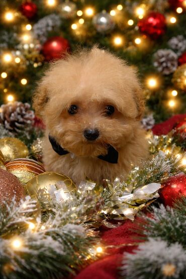 Miniatür ölçülü pudel balaları - Cins: kiçik ölçülü pudel/yunlu toy tip - Rəng: isti açıq-qəhvəyi (aprikot tonları) - Xüsusiyyətlər: hipoallergen, az tükləyən, zəkalı və asan öyrədilən; mənzil şər...