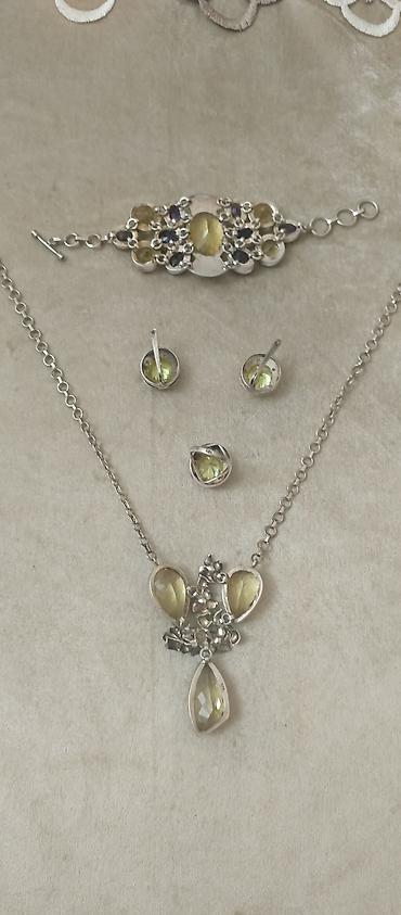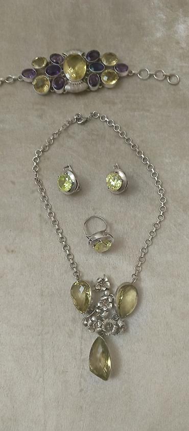 Zərgərlik dəsti – 925 ayar gümüş, limon-yaşıl daşlar və ametist əlavələri