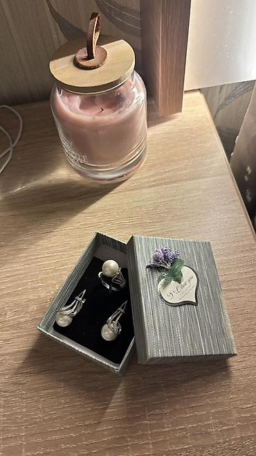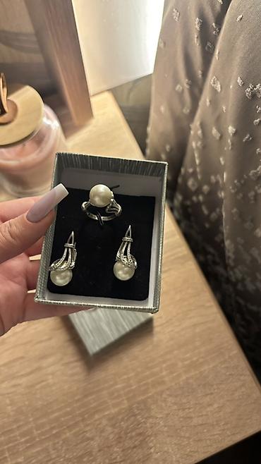 Satılır həqiqi gümüş dəst – üzük və sırğa, inci ilə.