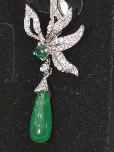 Ünvandan götürməSergi malı sirgalar qızıl ağ kaplama dağ bülluru ve təbii jadeit daşı Tək ekzeplardadi